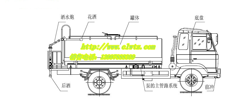 東風(fēng)145灑水車結(jié)構(gòu)簡圖