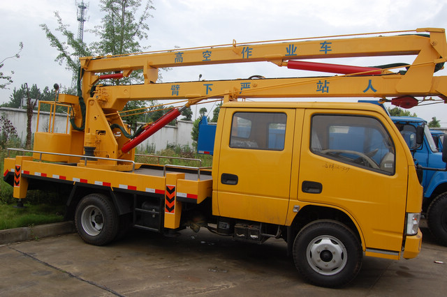 東風(fēng)國四小多利卡雙排高空作業(yè)車,作業(yè)高度一般可以分為14米、16米、和18米。