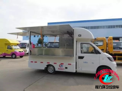 餐飲車又叫移動餐飲售貨車,由貨車底盤改裝而成,外形美觀,一車多用,集廣告宣傳、物資配送、商品售賣和快餐飲料等功能于一體,貨廂三面均可展開,外觀顏色多種可選,也可根據(jù)實際需求調(diào)整內(nèi)部結(jié)構(gòu)和在車身上噴繪特色廣告,還可選裝燈箱廣告和車身廣告系統(tǒng)。售賣地點可選在車站、校門口、步行街、休閑廣場、體育場館、旅游景點等場所,還能開到鄉(xiāng)鎮(zhèn)趕集,適用于快餐、冷飲、水果、蔬菜、水產(chǎn)、百貨等商品銷售。