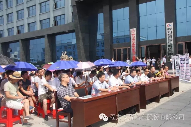 由湖北圣地車都公司、東風(fēng)康明斯發(fā)動機有限公司、東風(fēng)商用車公司和東風(fēng)專用汽車有限公司聯(lián)合舉辦的“東風(fēng)專用汽車底盤國五產(chǎn)品推介會”,在程力專用汽車股份有限公司八號樓前召開,東風(fēng)康明斯發(fā)動機有限公司卡車事業(yè)部總經(jīng)理胡道金先生,東風(fēng)商用車公司東風(fēng)專用汽車底盤公司副總經(jīng)理蔡倫新先生,東風(fēng)隨州專用汽車有限公司副總經(jīng)理邱宇先生,程力集團有限公司總經(jīng)理程阿羅先生等主要領(lǐng)導(dǎo)出席本次會議。