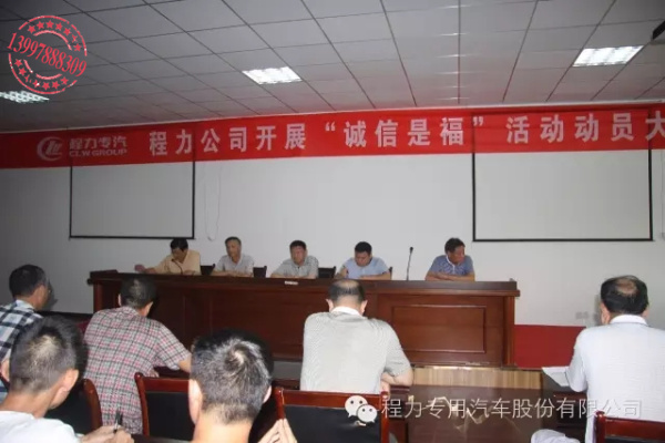 9月23日公司總經(jīng)理程阿羅參加公路養(yǎng)護(hù)車專業(yè)廠等專業(yè)廠《關(guān)于開展“誠(chéng)信是?!被顒?dòng)的通知》的分組學(xué)習(xí)和討論。會(huì)議學(xué)習(xí)了程力專汽黨字(2016)5號(hào)文件,《關(guān)于開展“誠(chéng)信是?!被顒?dòng)的通知》。公司總經(jīng)理程阿羅強(qiáng)調(diào),要求大家端正思想,認(rèn)真學(xué)習(xí),提高認(rèn)識(shí),樹立公司形象,加強(qiáng)典范經(jīng)營(yíng)。同時(shí)強(qiáng)調(diào)經(jīng)濟(jì)上升,思想不滑坡。銷售承諾必須兌現(xiàn)。從源頭抓起,原材料不進(jìn)劣質(zhì)品,按照合同配置要求,進(jìn)行裝配,不偷工減料。嚴(yán)格生產(chǎn)工藝管理和流通過程管理。并強(qiáng)調(diào)執(zhí)行合同的嚴(yán)肅性,按時(shí)交貨,履行價(jià)格水準(zhǔn),做好售后服務(wù)工作,提高程力在市場(chǎng)的信譽(yù)度,打造好“程力威”馳名商標(biāo)品牌,讓“程力威”品牌深入每個(gè)經(jīng)營(yíng)者和用戶的心中。