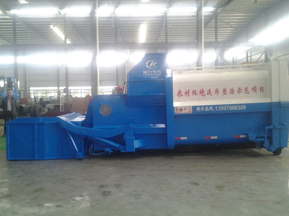 10)公司生產(chǎn)的垃圾壓縮站用車廂可卸式垃圾車(俗稱鉤臂車)進(jìn)行運(yùn)輸,一般一臺(tái)車配4~6個(gè)我們的垃圾壓縮站。大大提高了車的使用效率。減少總的投資管理維護(hù)費(fèi)用。