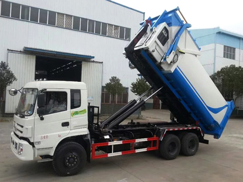 移動壓縮箱壓縮比為1方壓縮好的垃圾820公斤,1000公斤=1噸,東風天錦16噸勾臂車配10-12方移動站,則壓縮好的垃圾為10噸加上箱5噸;東風天龍25噸勾臂垃圾車配15-18方移動壓縮站,壓縮好的垃圾為12噸左右加上箱6噸,這是正常的生活用垃圾。